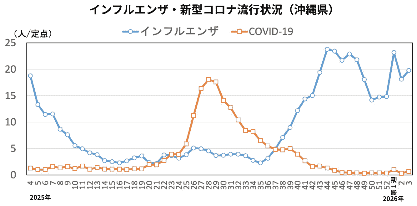 沖縄県感染症情報センターからの週末の定期報告(今年の第3週報)が発表されました。