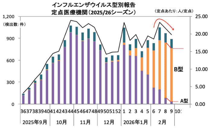 最新の感染症流行状況 2026年第9週(2/23~3/1)