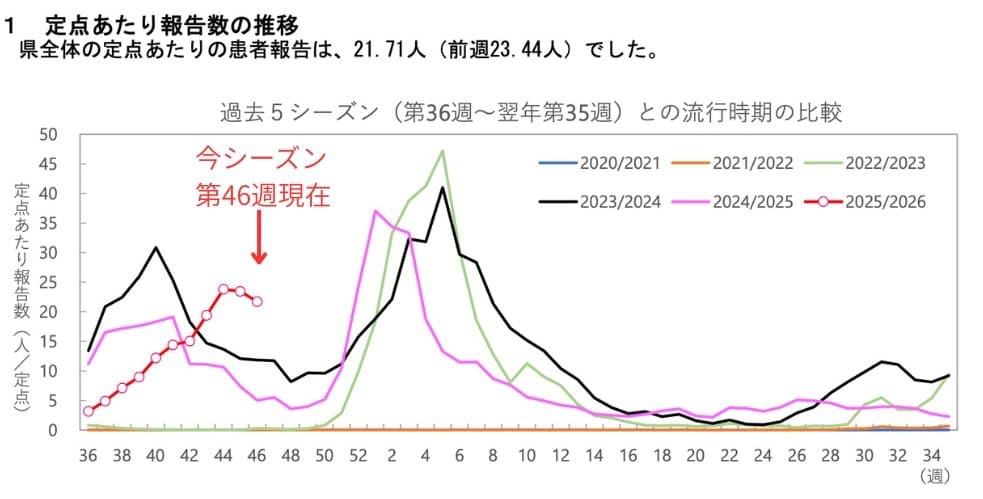 最新の感染症流行状況 第46週(11/10~11/16)